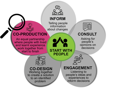 “Co-production is a partnership where people with lived and learnt experience work together to have meaningful influence over the things that matter to them.”